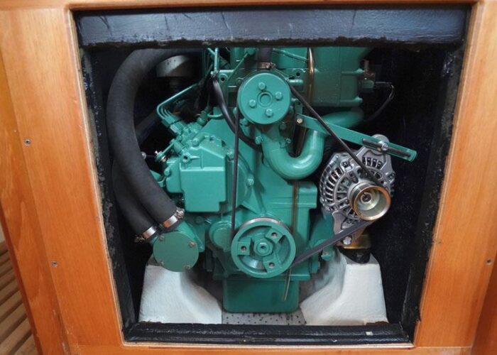Going down the companionway, you arrive in a large, open space with chart table and heads to starboard and galley to port. The owner’s cabin is located in the forward part of the yacht, offering a double berth, a seat, storage and ensuite heads / shower. A traditional saloon with two sofas and a foldable table, an aft cabin to port with double berth and an aft cabin to starboard which can be used for sleeping 1-2 persons or as a huge storage cabin.