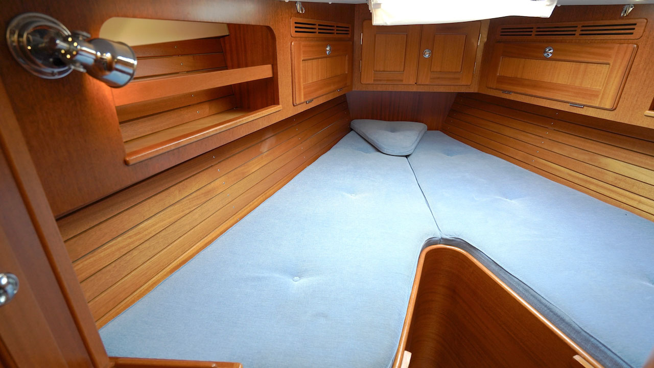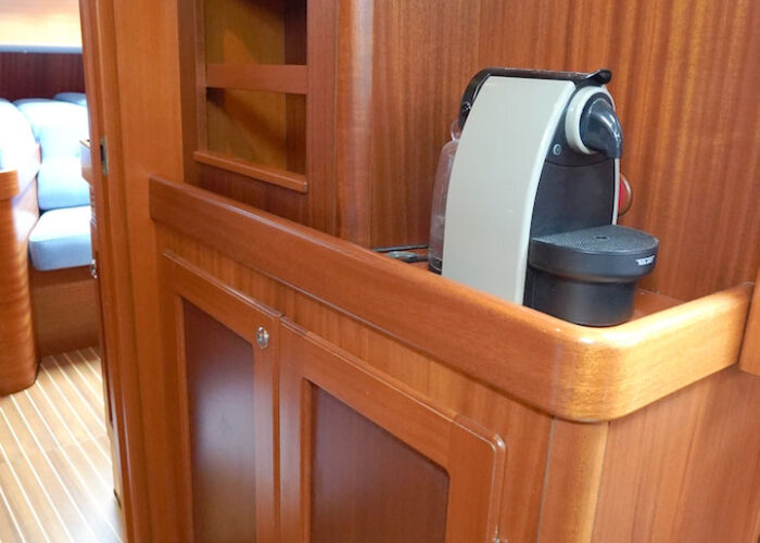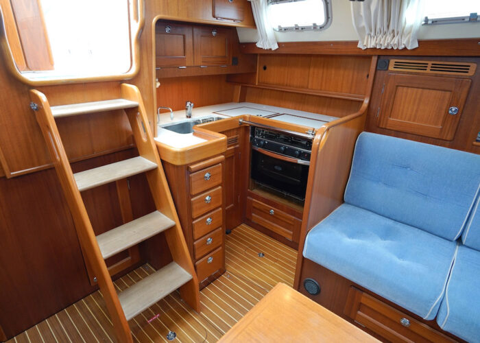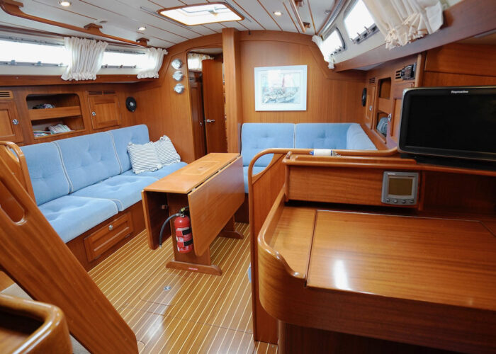 Hallberg-Rassy 40 is a yacht that is built to go anywhere. A solid, modern and strong blue water cruiser. Easy to handle by a couple. The layout offers an owner’s aft cabin with a double berth and single berth, a forward guest cabin with a v-berth, saloon with 2 x sofas, and a foldable table. Directly to port of the entrance is the galley and to starboard is the navigation table. A spacious heads with shower is located forward of the mast bulkhead. As expected on a Hallberg-Rassy there is plenty of storage space and a (really) large engine room.