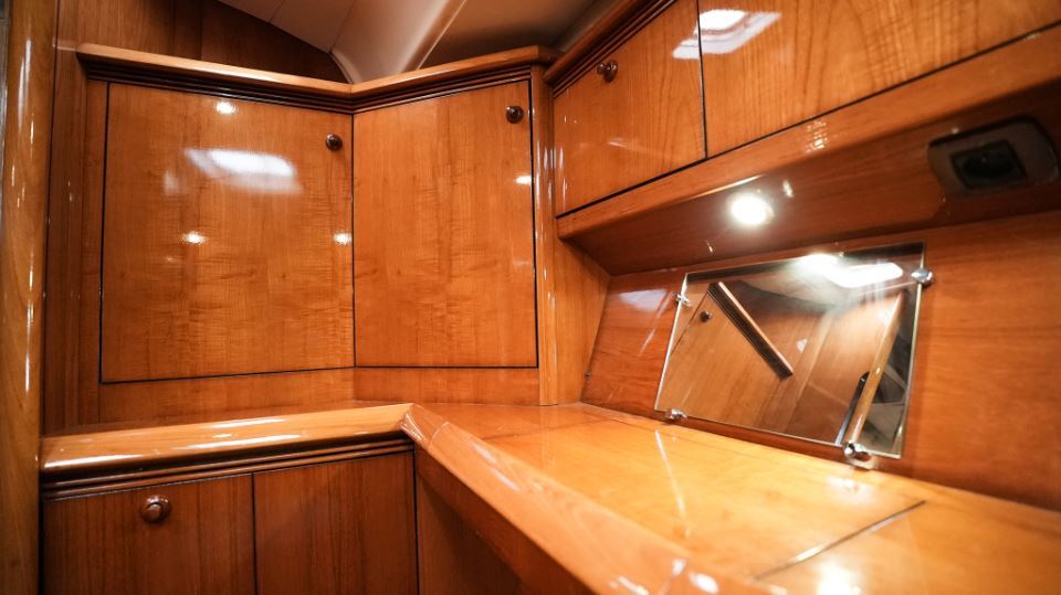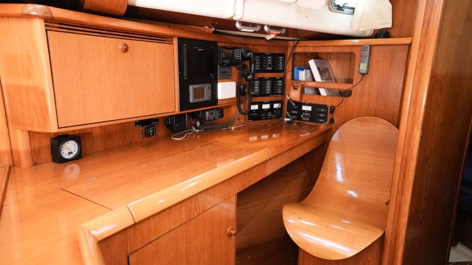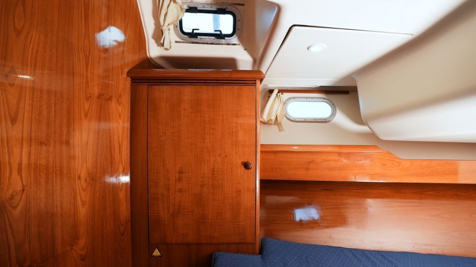 The owner of WORKING ON A DREAM, highlights the boat’s single-handed sailing capabilities. Even in really strong winds, she remains manageable thanks to her balanced sailplan and responsive helm. Regular maintenance, including haul-outs, rig inspections, and sail servicing, ensures the boat stays in good condition for her age. The engine has been well-maintained and preventive measures have been taken to the fuel system and other mechanical components.