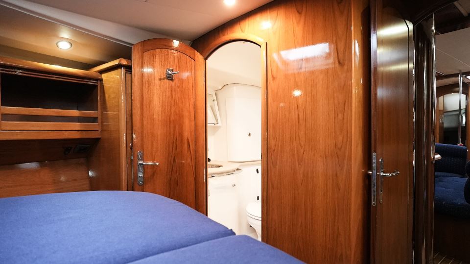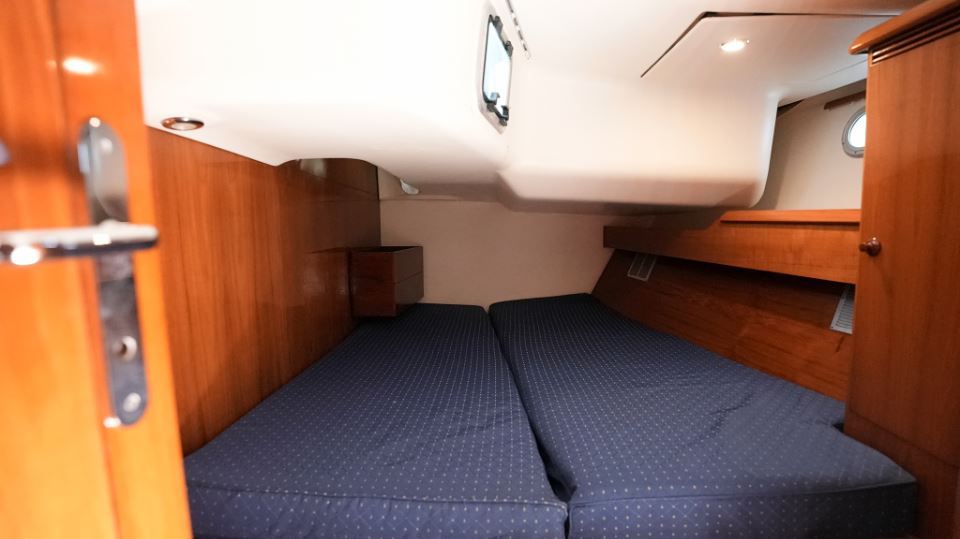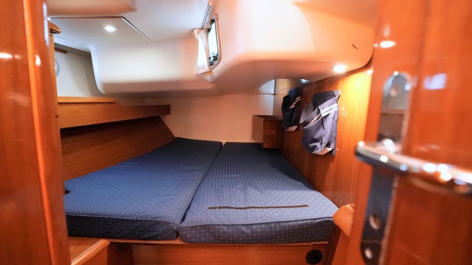 Below decks, the Sun Odyssey 49 is designed for comfort and practicality. The spacious master bedroom forward includes an en-suite head, while the two double cabins in the aft share one head. For larger families, the front cabin can also be divided into two separate cabins through a longitudinal attachable bulkhead. This would turn the boat into a 4-cabin version.