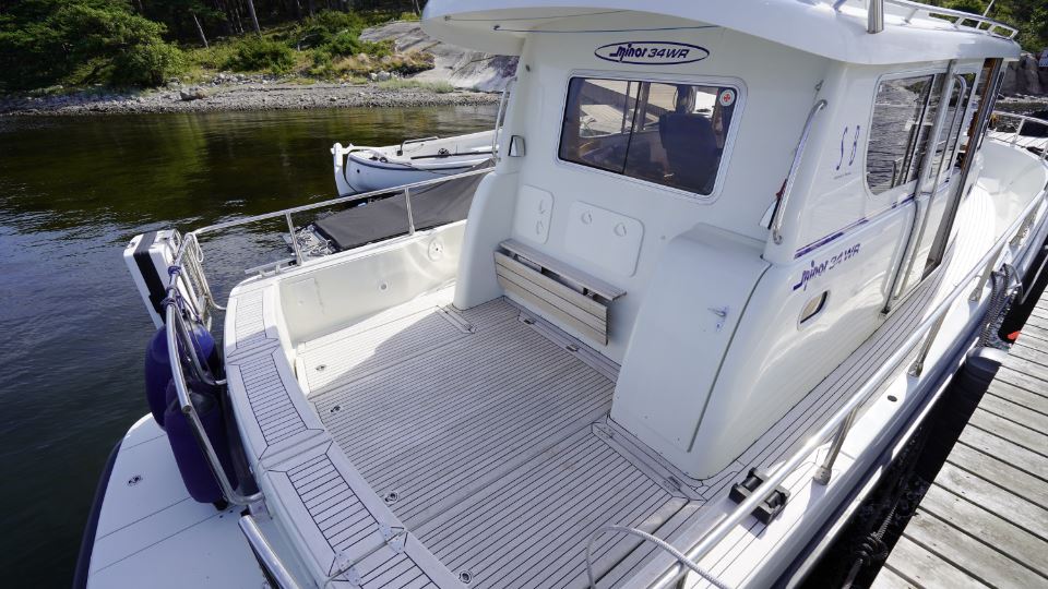 Minor Offshore 34 WR is manufactured by Sarins Båtar in Finland. With more than 2,000 boats produced, the name Minor was changed in 2014 to the now more well-known Sargo. The model was launched in 2001 and quickly became a popular choice among leisure sailors and has even been used professional by the police. Minor Offshore 34 WR is an off-road vehicle adapted for the sea, featuring a pilothouse and walkaround design that can manage rough weather and tough seas. Together with Botnia Targa, Finnish manufacturers have created a unique class for these safe adventure boats.