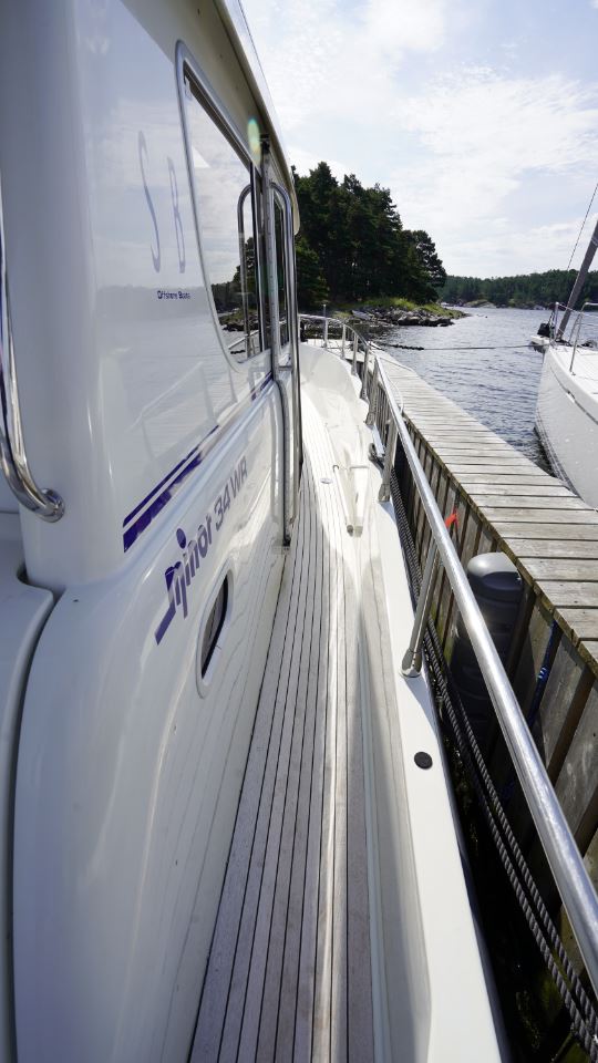 PLUFF has only had two meticulous owners who have taken great care of her. The current owner has updated her with a new complete Raymarine navigation system, including both radar and AIS, and a new plotter. The electrical system has been upgraded with a proper isolation transformer, and there is both running heating and a diesel heater, making her suitable for all seasons at sea. She was delivered with an impressive specification that includes both bow and stern thrusters, a fine teak deck, and an electric windlass at the stern. For propulsion, she is equipped with the powerful Volvo Penta D9 engine, a true workhorse that, together with the straight shaft, provides long service life, low maintenance costs, and trouble-free ownership.