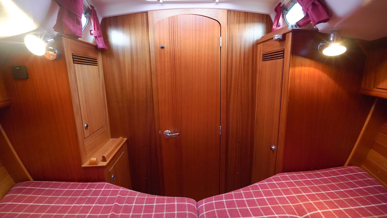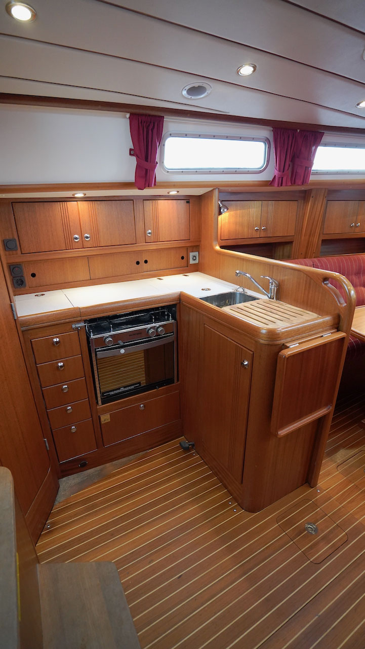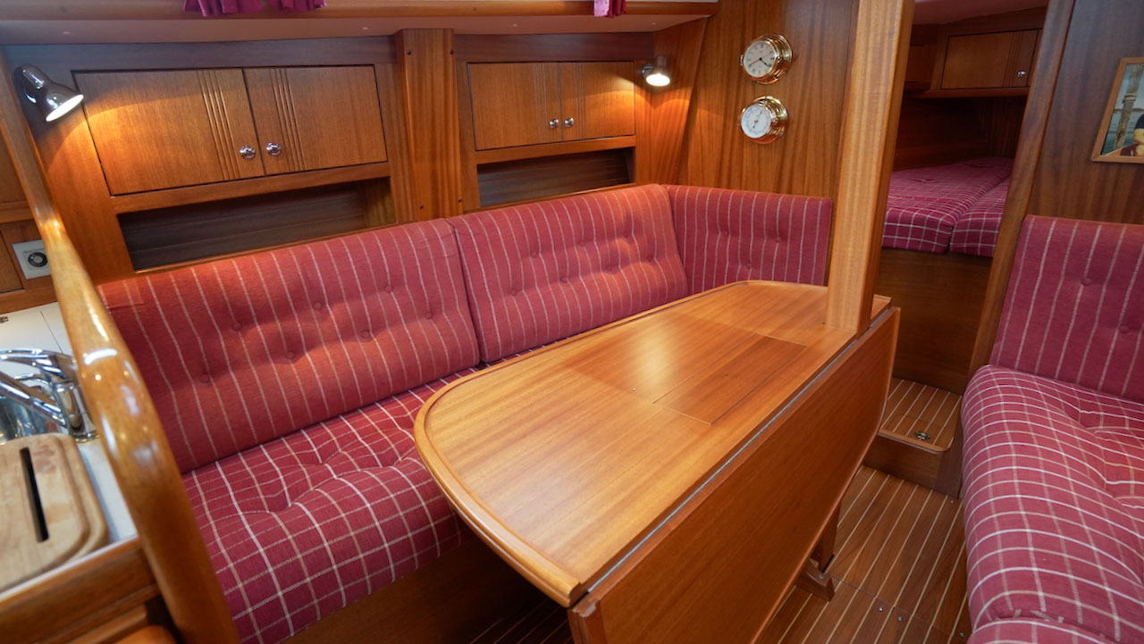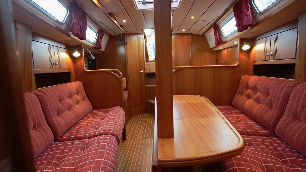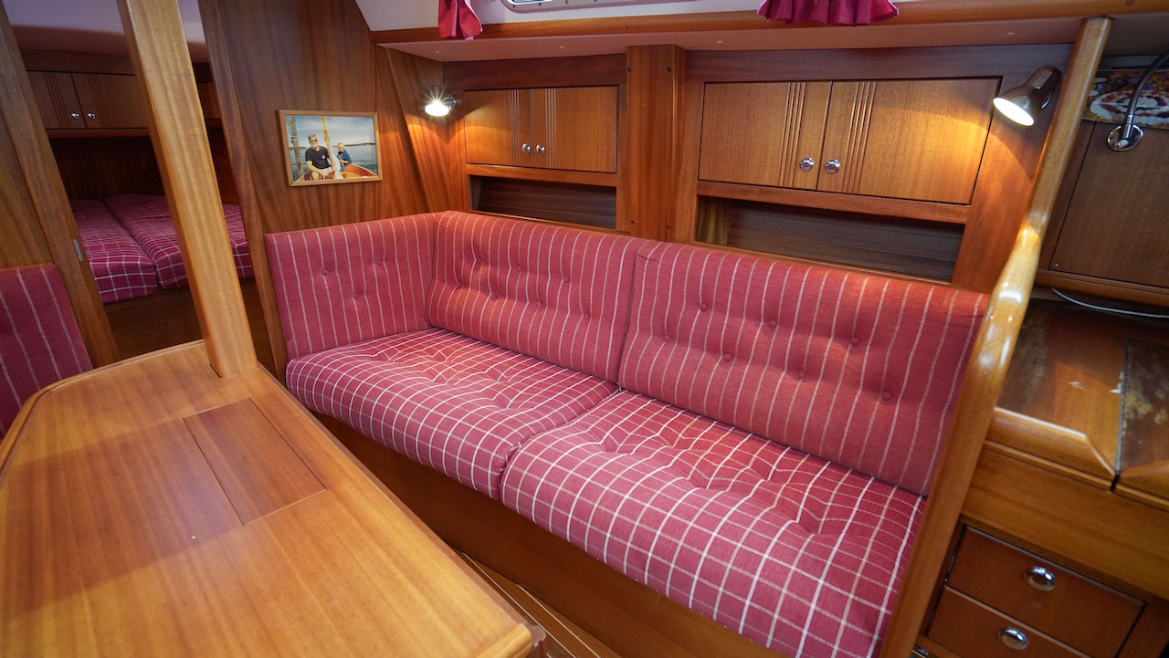 This Najad 332 INGA offers a great layout with the galley, navigation and heads just at the entrance. The saloon has two sofas. There is a forward cabin with a v-berth and a cabin to port, aft of the galley, with a a wide double berth.