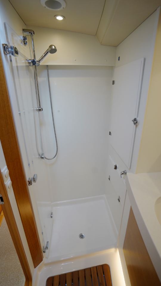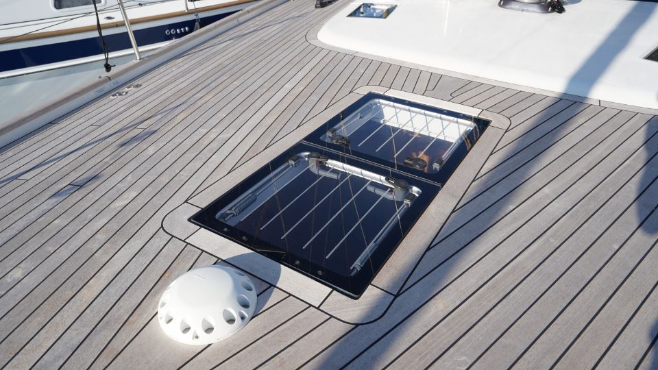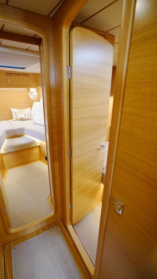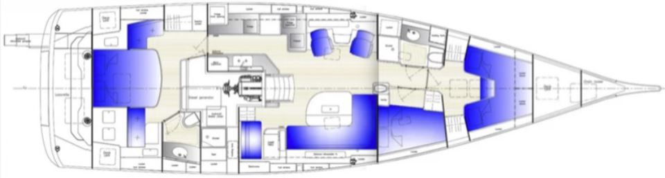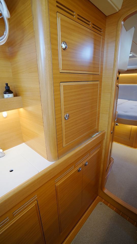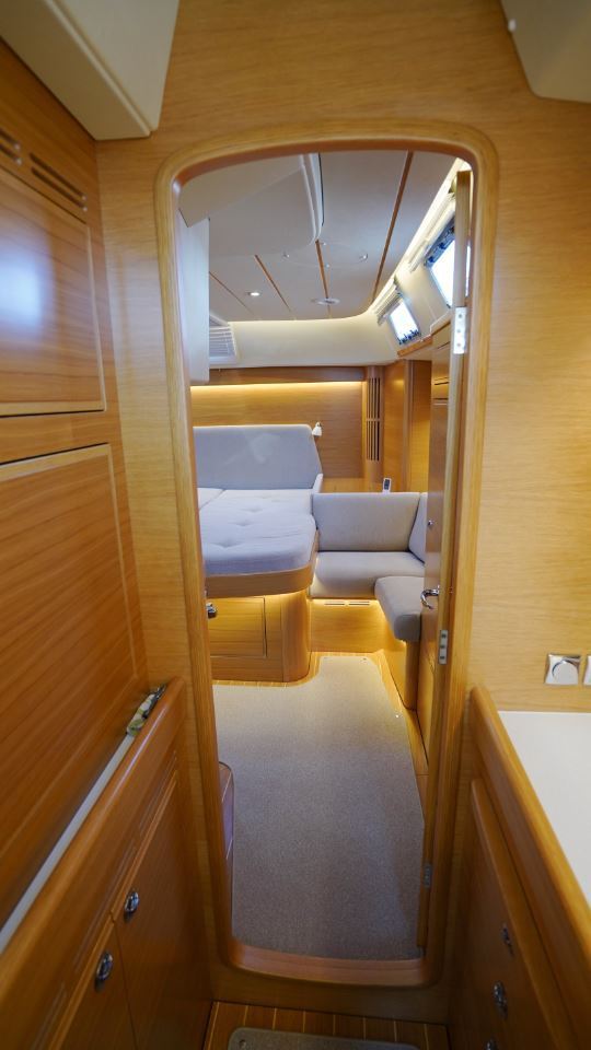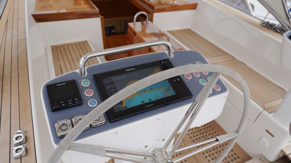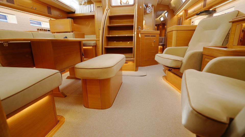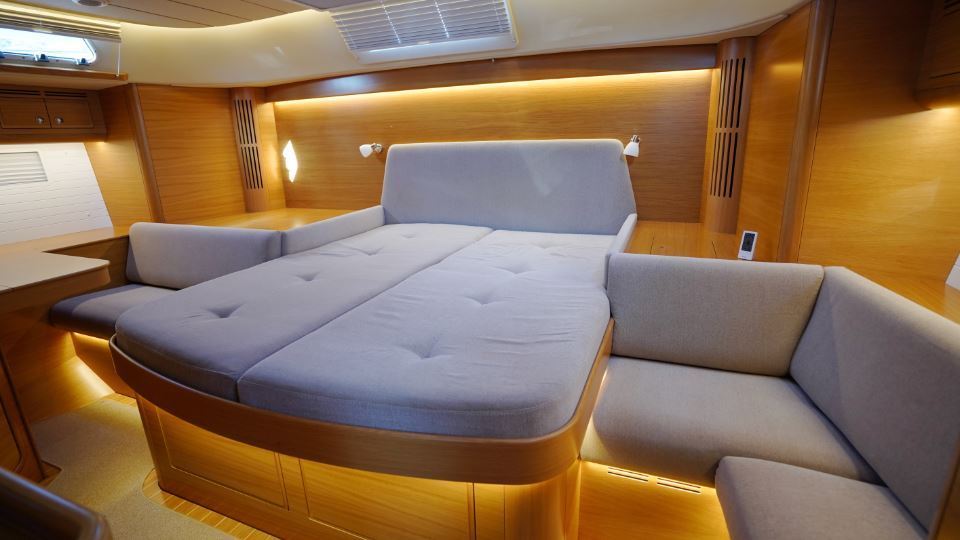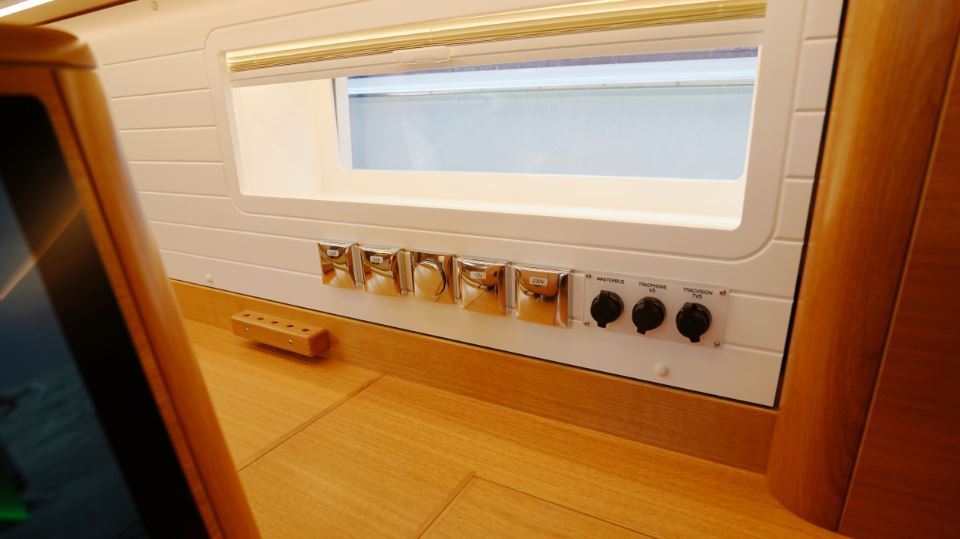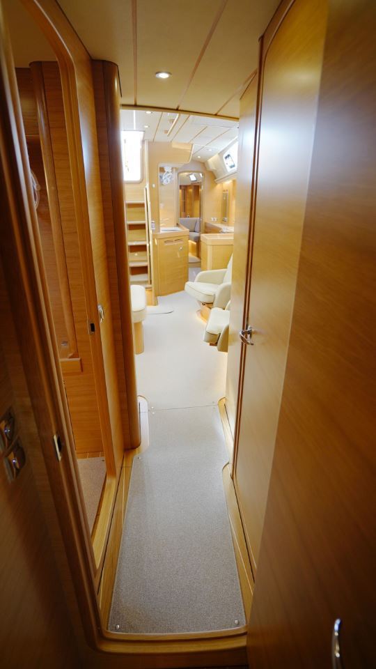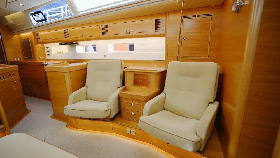 Her sail plan is powerful and versatile, including mainsail, genoa, removable cutter jib, furling system, Code 0 and a Blue Water Runner. The rig consists of a white-painted carbon mast and carbon boom, reducing weight aloft, improving stability and performance. All furling systems are hydraulic and every winch is electrically operated, ensuring easy, reliable and efficient sail handling under all conditions.