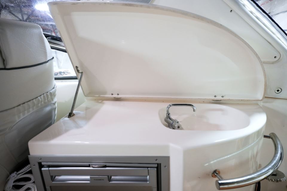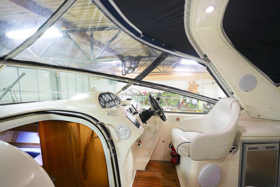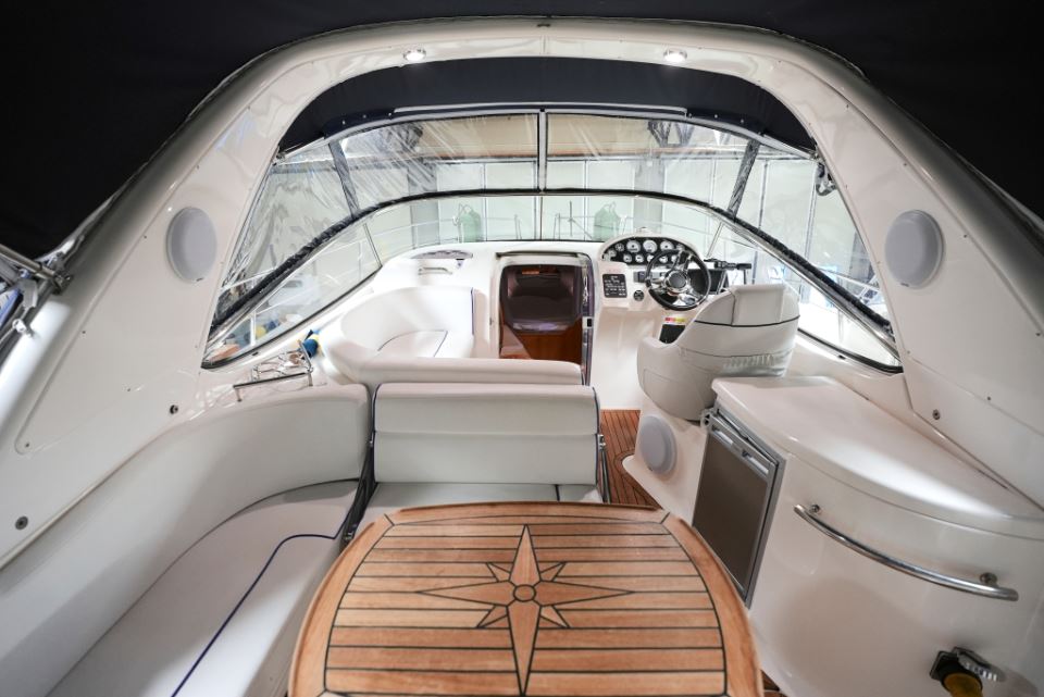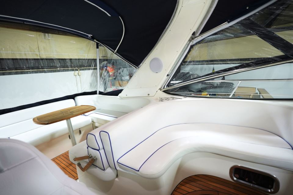 Detta exemplar från 2006 är i ovanligt gott skick för sin ålder. Undervattenskroppen blästrades och byggdes upp på nytt 2023 och kapellet från samma år ger sittbrunnen ett fräscht helhetsintryck. Pentryt och wetbaren har förbättrats med två rostfria kylskåp och en nyare spis, och vid är styrplatsen är stolen och ratten uppgraderade. En nyare stereo och ljudsystem tillsammans med den oljade teaken i sittbrunnen ger ett modernt och välvårdat intryck. Båten har förvarats inomhus i varmhall vintertid och det har bidragit till att bevara det goda skicket.