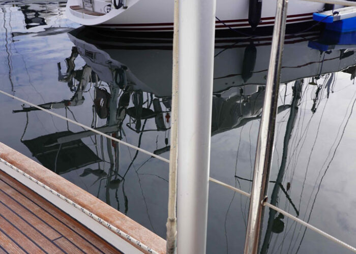 Båten ligger nu klar i vattnet och väntar och vi önskar nu de nya ägarna underbara upplevelser på de sju haven!