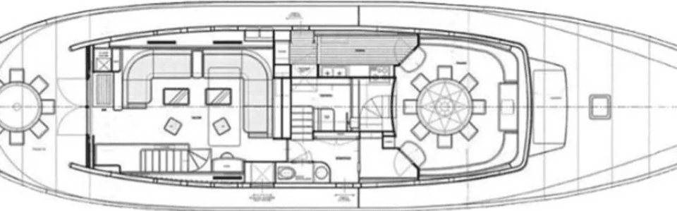 På akterdäck finns en sittgrupp och en trappa som tar dig till övre däck och flybridge. På främre däck finns ingången till besättningshytten, en sittgrupp och en trappa som tar dig till upp till en yta för solbad. Hela däck är belagt med teak.