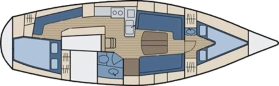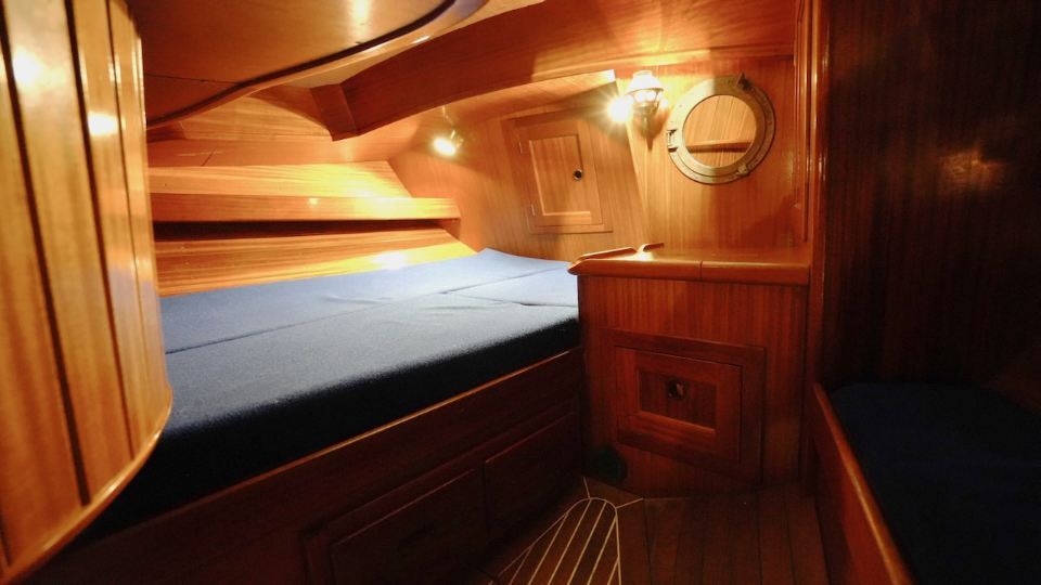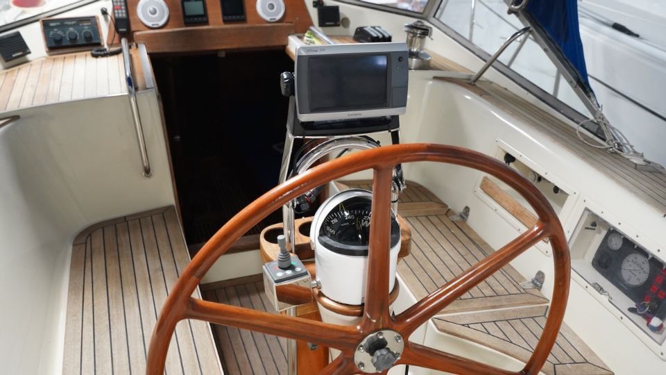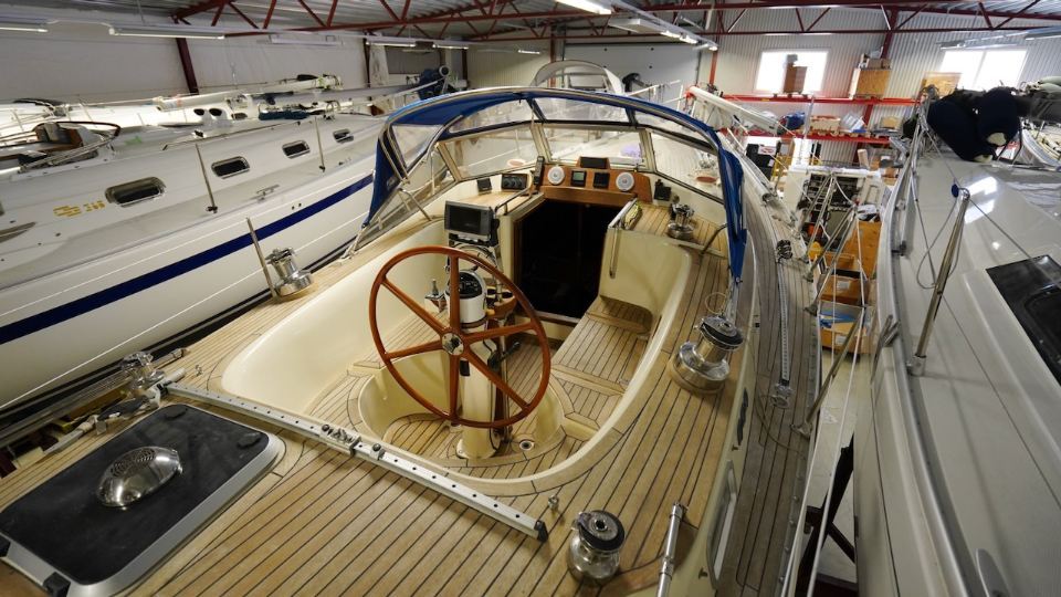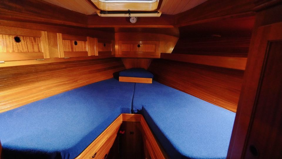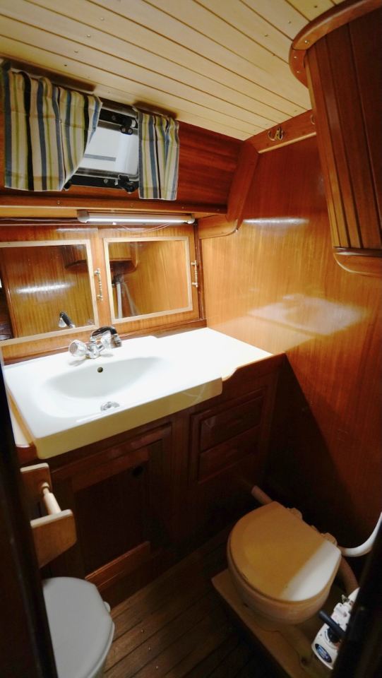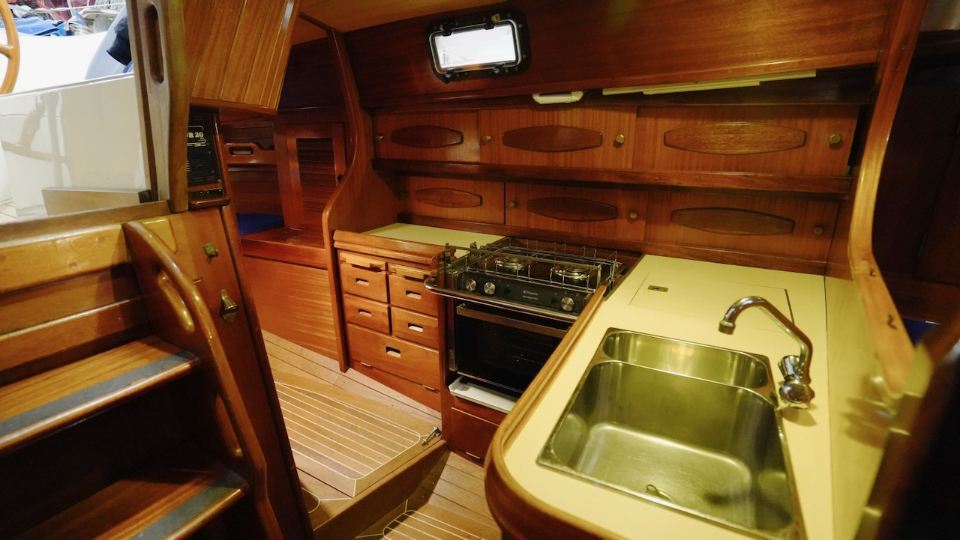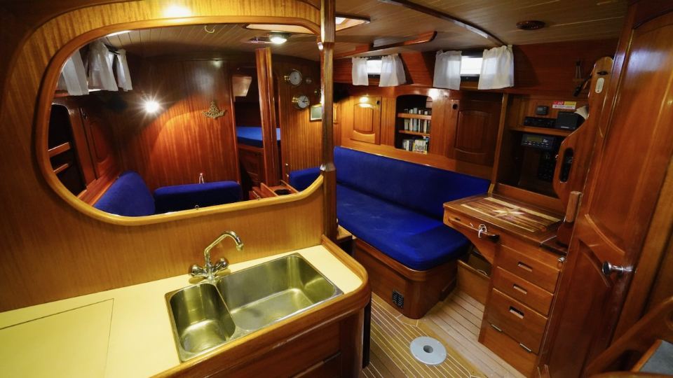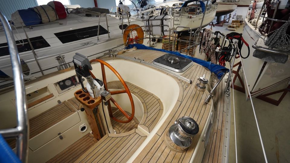 Båten erbjuder generösa utrymmen både ovan och under däck, vilket gör den väl lämpad för såväl längre semestrar som bekväma helgturer. Här möts man av en varm och ombonad interiör med fina träarbeten och en planlösning som fungerar lika bra för sociala stunder som för vila. Salongen är rymlig och inbjudande, och det finns gott om förvaring för ett bekvämt båtliv under längre perioder.