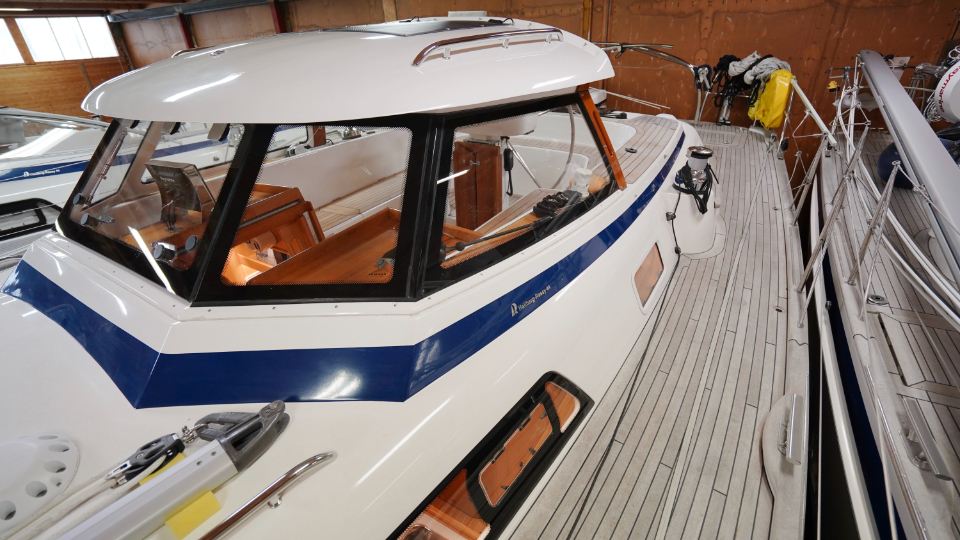 Skrovet har en modern utformning med relativt bred akter, dubbla roder, ett modernt segelplan och integrerat peke. Tillsammans ger detta goda seglingsegenskaper i ett brett spektrum av förhållanden. Den ökade bredden bidrar även till större invändig volym, vilket möjliggör en bekväm layout för upp till sex personer.