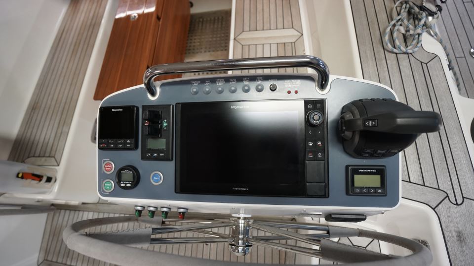 Den kraftfulla och mångsidiga segelgarderoben omfattar storsegel, genua, Code 0 och gennaker. Båten är utrustad med en modern rullmast i aluminium med hydraulisk in-mast-rullning och hydrauliskt uthal, elektrisk genuarullning samt elektriska vinschar. All segelhantering sker smidigt med knapptryckning.