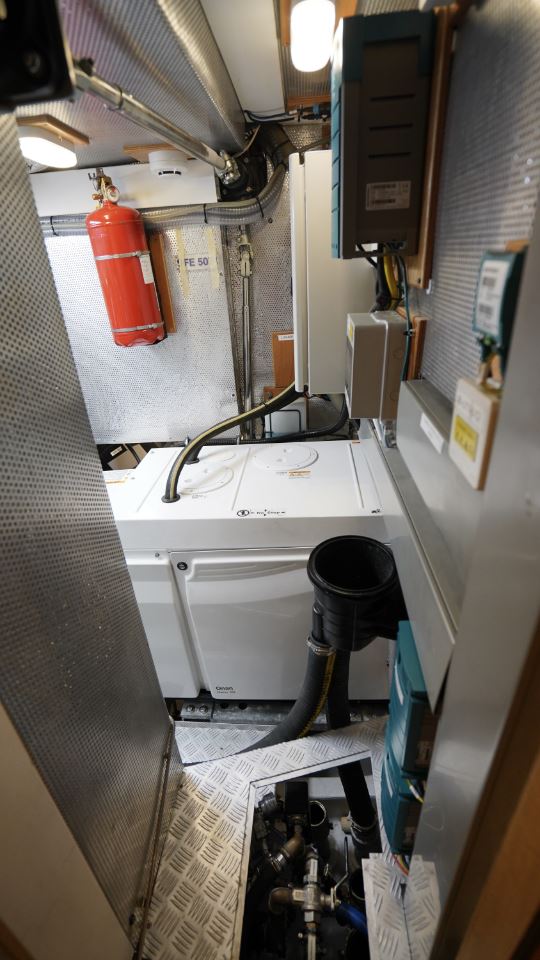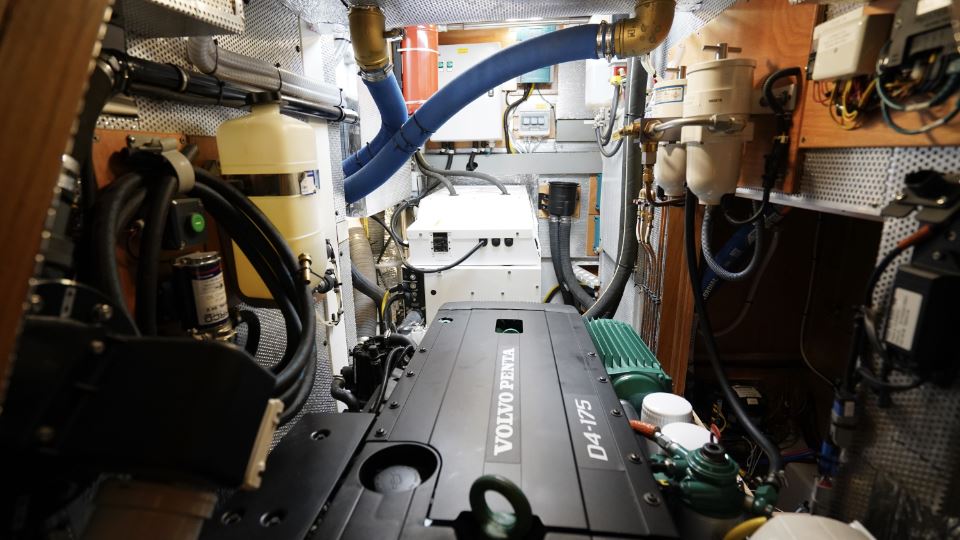 Den tekniska utrustningen motsvarar båtens höga ambitioner. Framdrivningen sker via en Volvo Penta D4 på 175 hk, kopplad till AquaDrive-axelsystem för mjuk och tyst gång. Med Volvo Pentas gränssnitt integrerat i systemet kan all motordata övervakas direkt i plottern. Elförsörjningen sker via en omfattande litiumbatteribank i kombination med en Onan-generator. Navigation och kommunikation hanteras genom ett komplett Raymarine-system.