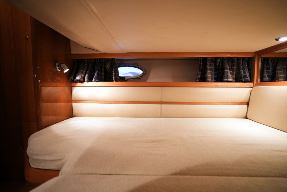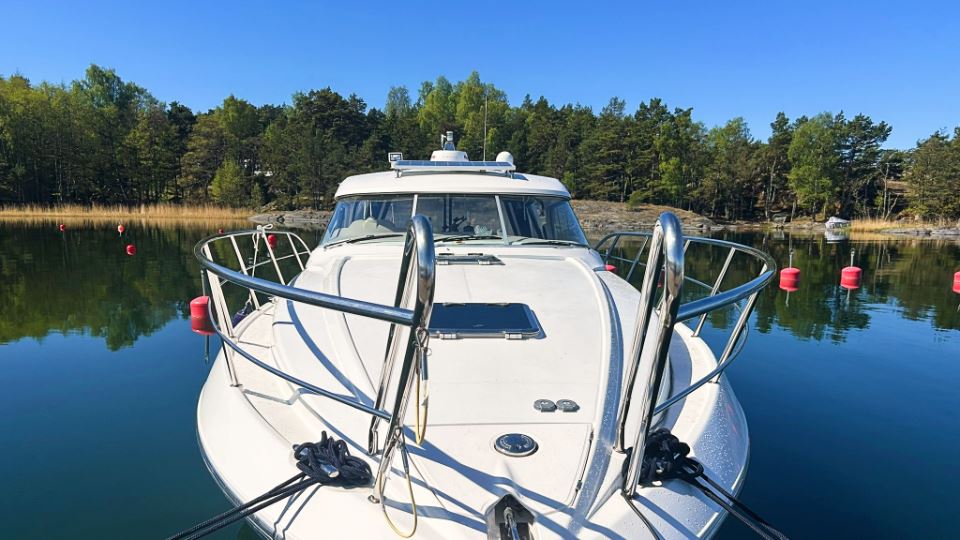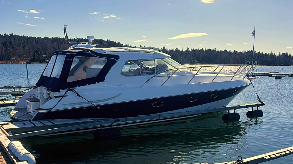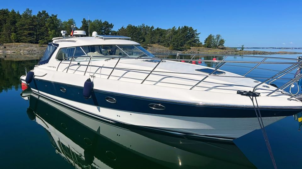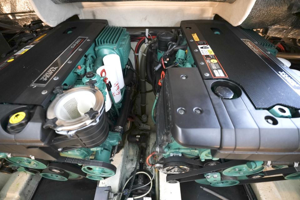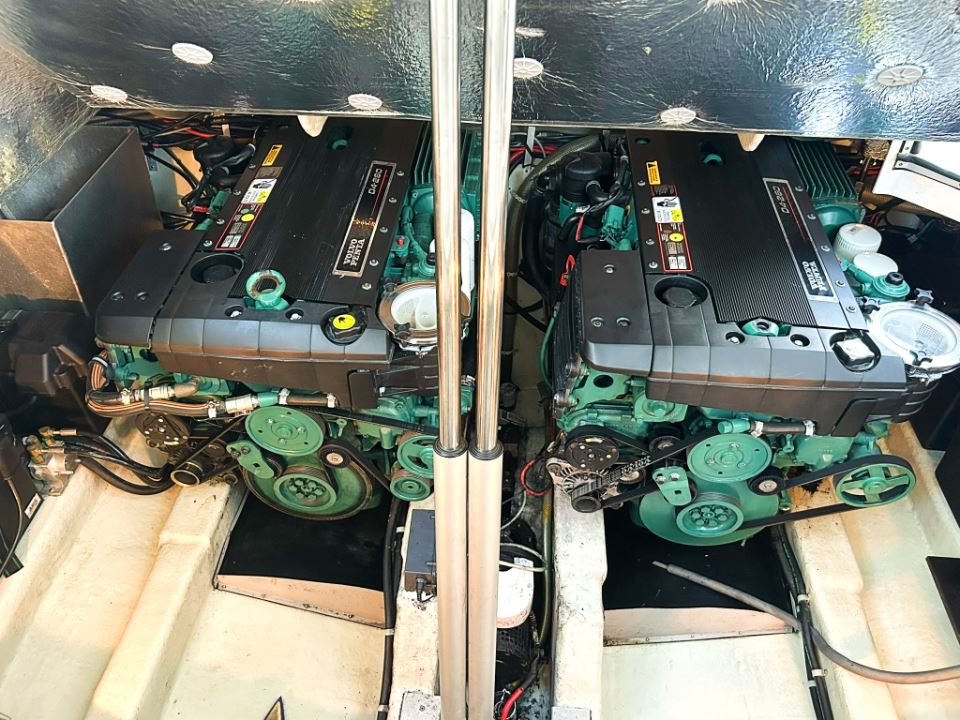 Detta exemplar från 2006 är utrustat med dubbla Volvo Penta D4 på 260 hk med DuoProp, vilket ger bra vridmoment i mellanregistret, effektiv marschfart och lägre driftkostnader än tidigare generationers motorer, samtidigt som toppfarten ligger runt 35 knop och bekväm marsch kring 27 knop. Motorer och drev har underhållits noggrant och ett stort antal viktiga servicearbeten och uppgraderingar har genomförts de senaste åren.