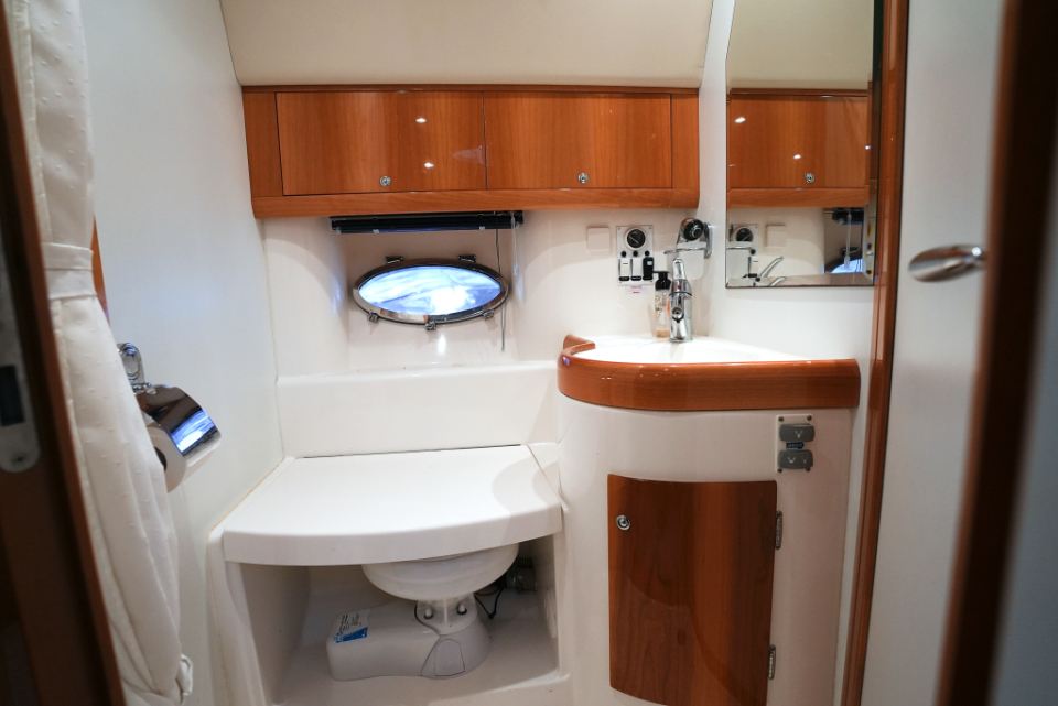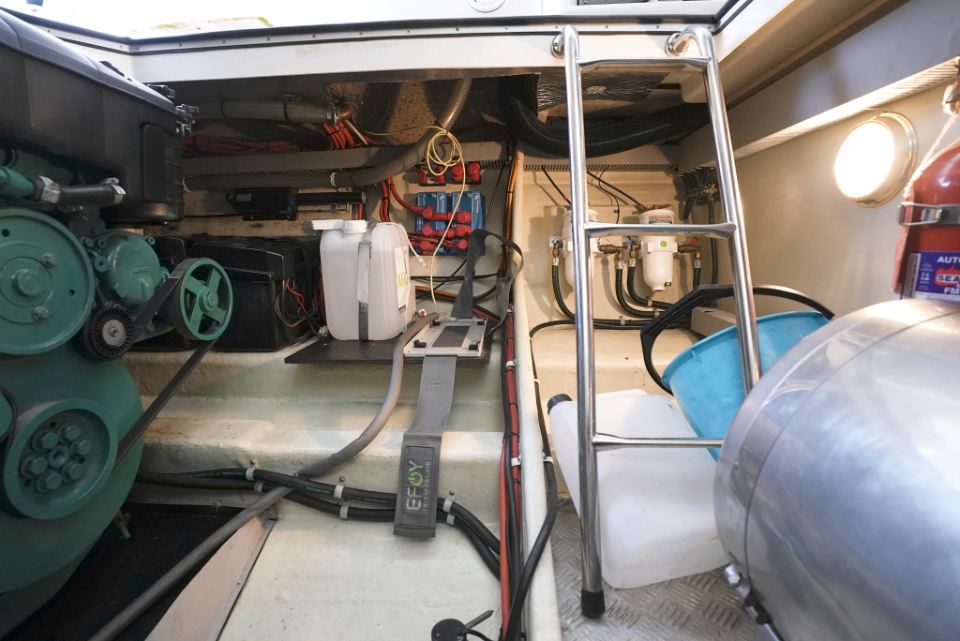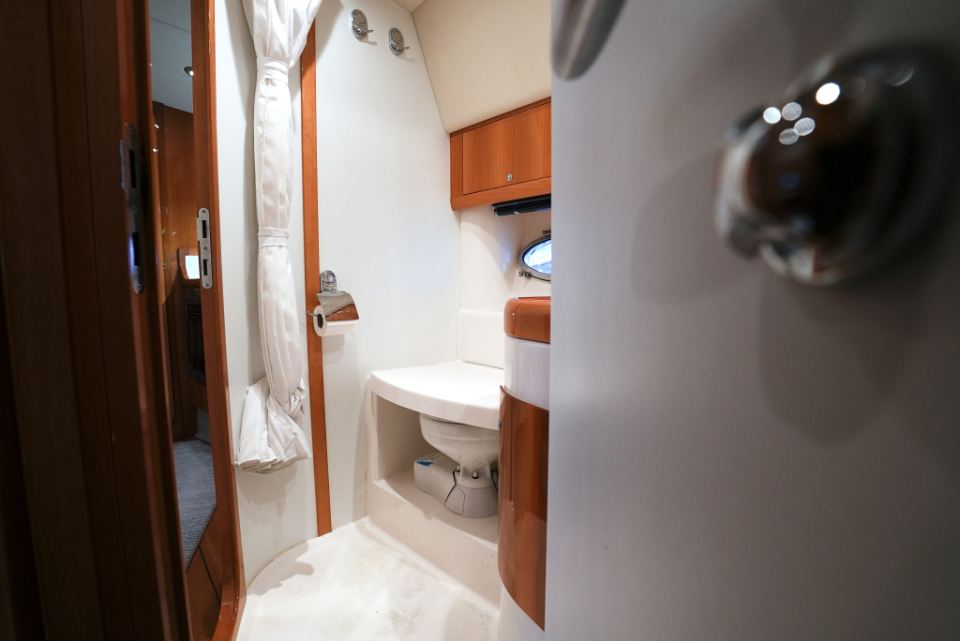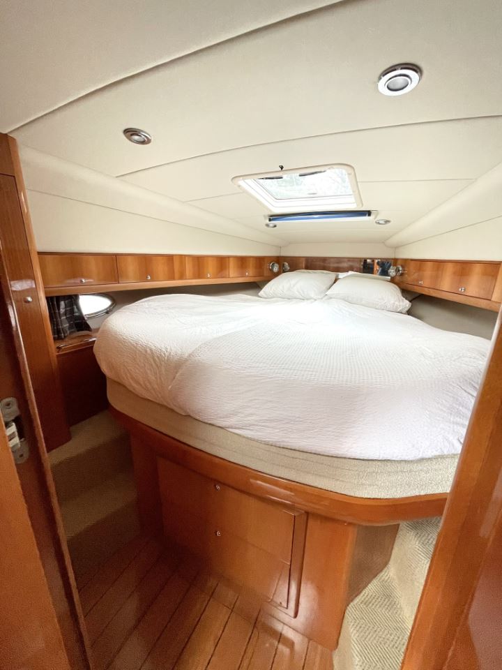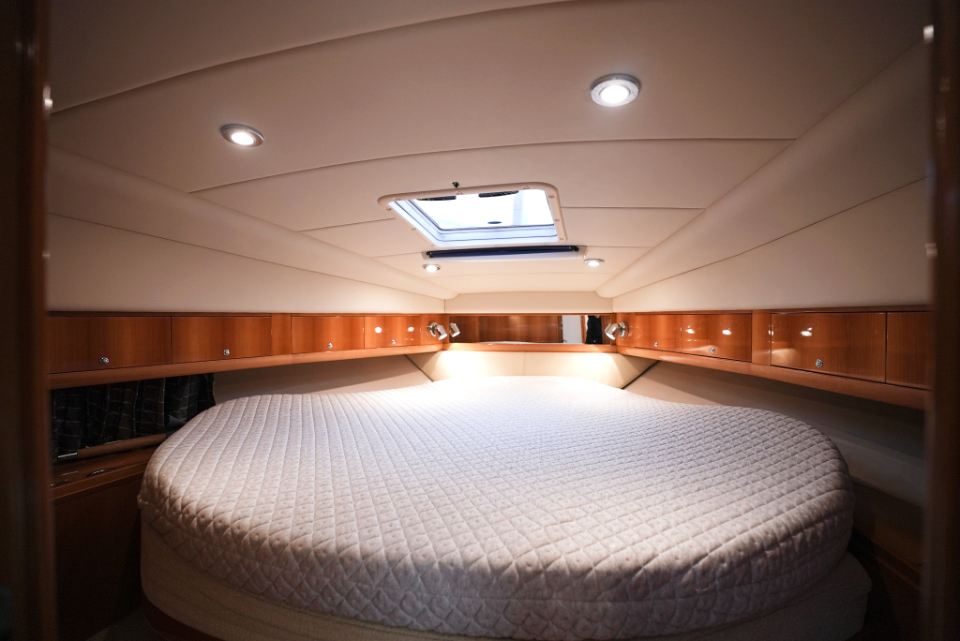 Detta exemplar från 2006 är utrustat med dubbla Volvo Penta D4 på 260 hk med DuoProp, vilket ger bra vridmoment i mellanregistret, effektiv marschfart och lägre driftkostnader än tidigare generationers motorer, samtidigt som toppfarten ligger runt 35 knop och bekväm marsch kring 27 knop. Motorer och drev har underhållits noggrant och ett stort antal viktiga servicearbeten och uppgraderingar har genomförts de senaste åren.